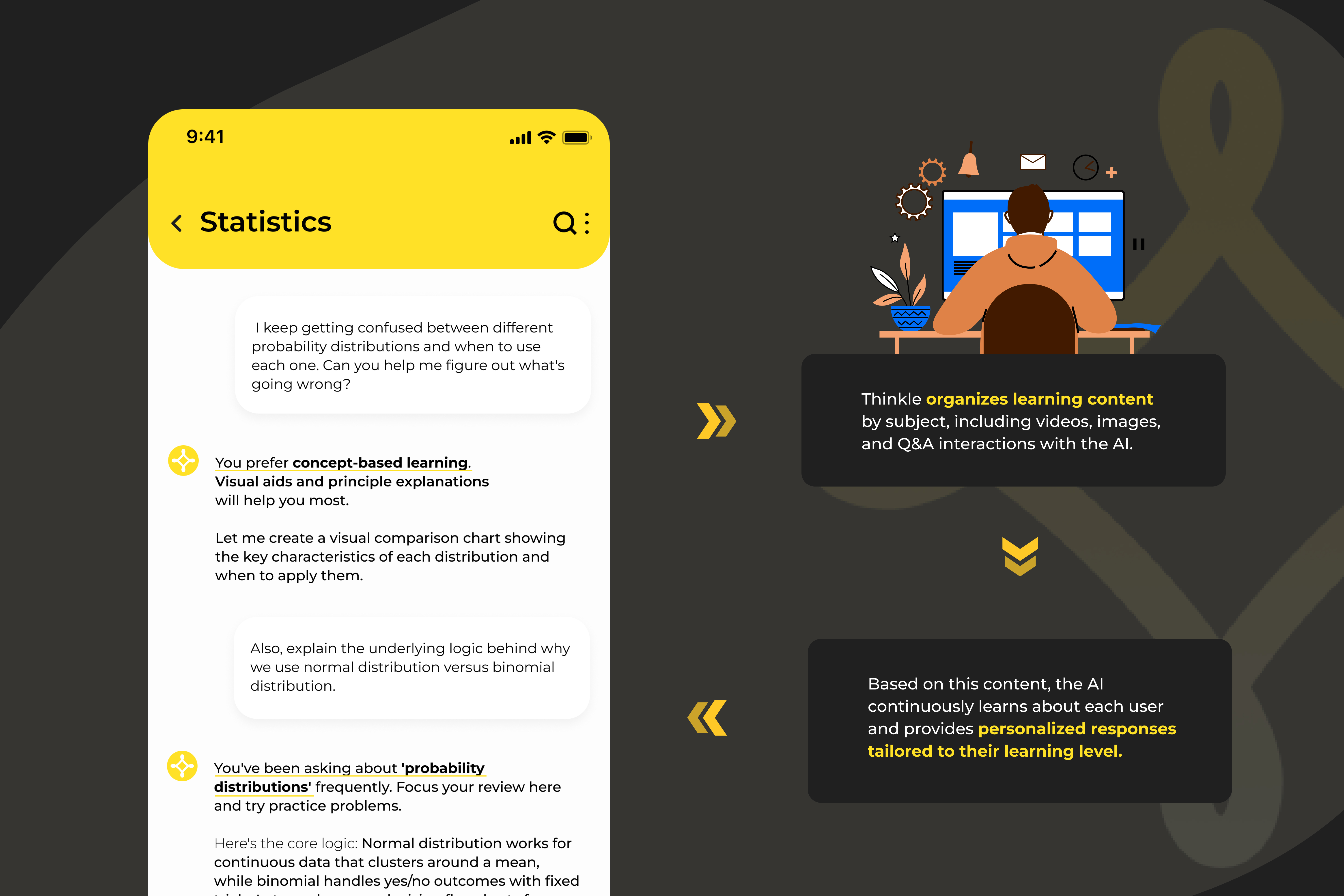 In five years, I envision Thinkle as a comprehensive learning ecosystem integrated across educational institutions globally. The platform will have evolved beyond academic support to encompass professional training and lifelong learning. We'll likely have partnerships with major LMS providers and wearable tech companies, with our AI having learned from millions of learning interactions to provide even more personalized guidance. Personally, I see myself leading the expansion into new markets while maintaining our core mission of making quality education accessible and adaptive for every learner, regardless of their background or learning style.
