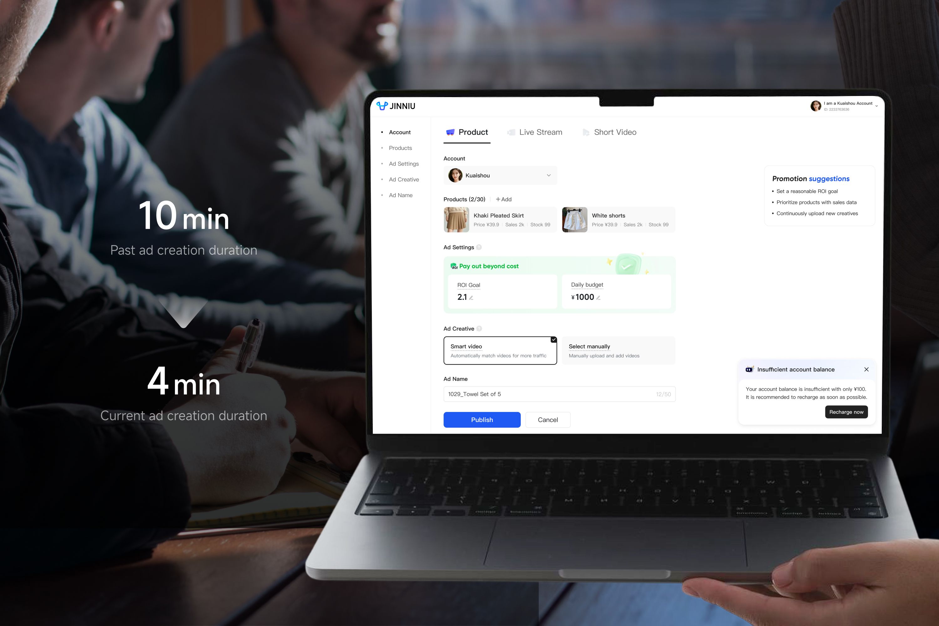 In the next five years, we believe JinNiu will remain effective, easy to use, and inclusive. The next generation of JinNiu may evolve into an even more lightweight and intelligent tool: merchants would only need to express their marketing goals and creative ideas, then evaluate ad results, while everything in between—such as ad parameter setup, real-time tracking and optimization, and data analysis—would be handled by advanced AI technology. In this future, our role may shift from designing interaction flows to designing around trust and AI systems. Regardless of how it evolves, we must remain closely grounded in people’s needs and emotions and translate technology into solutions that are genuinely simple, trustworthy, and human-centered.