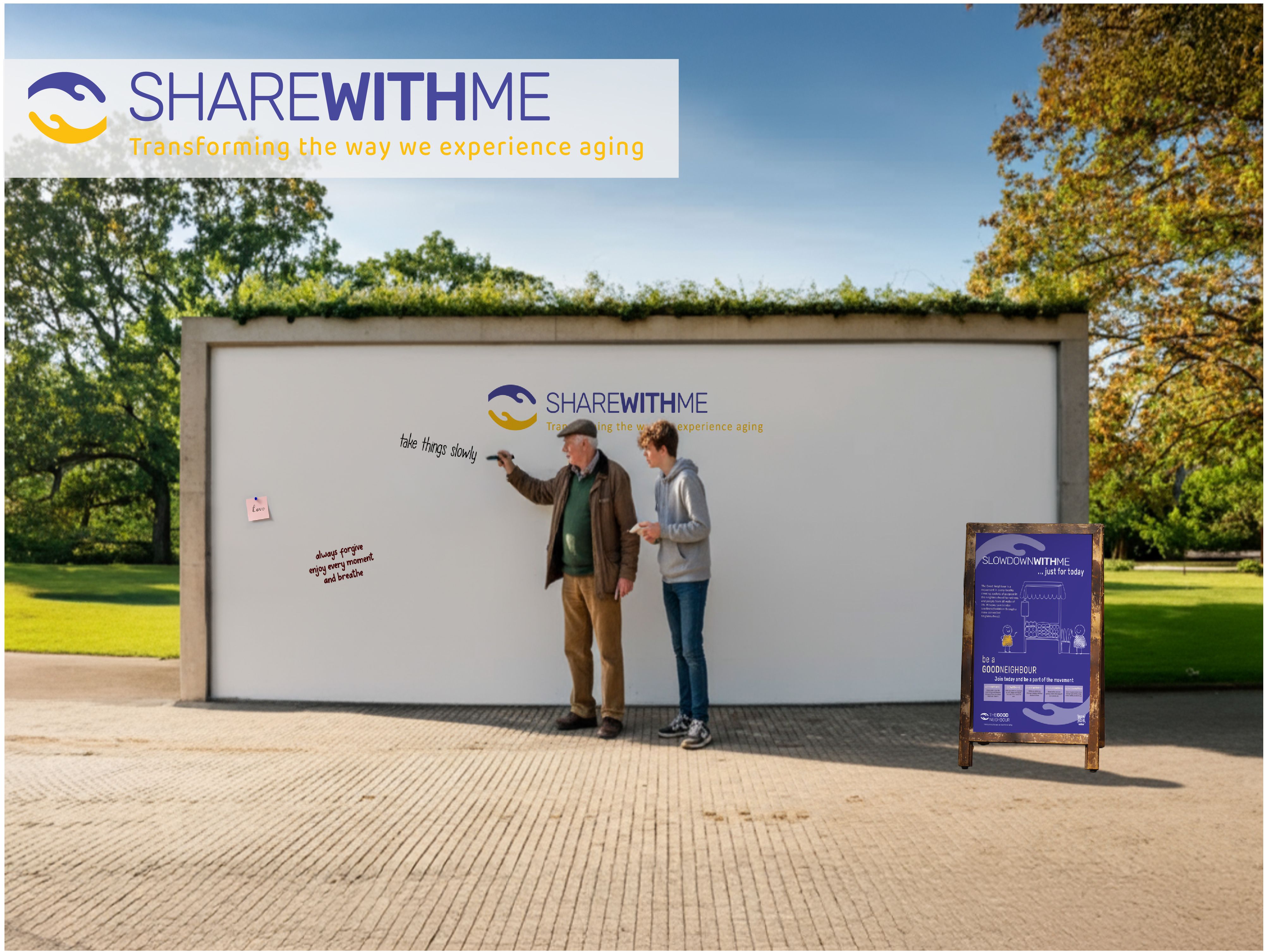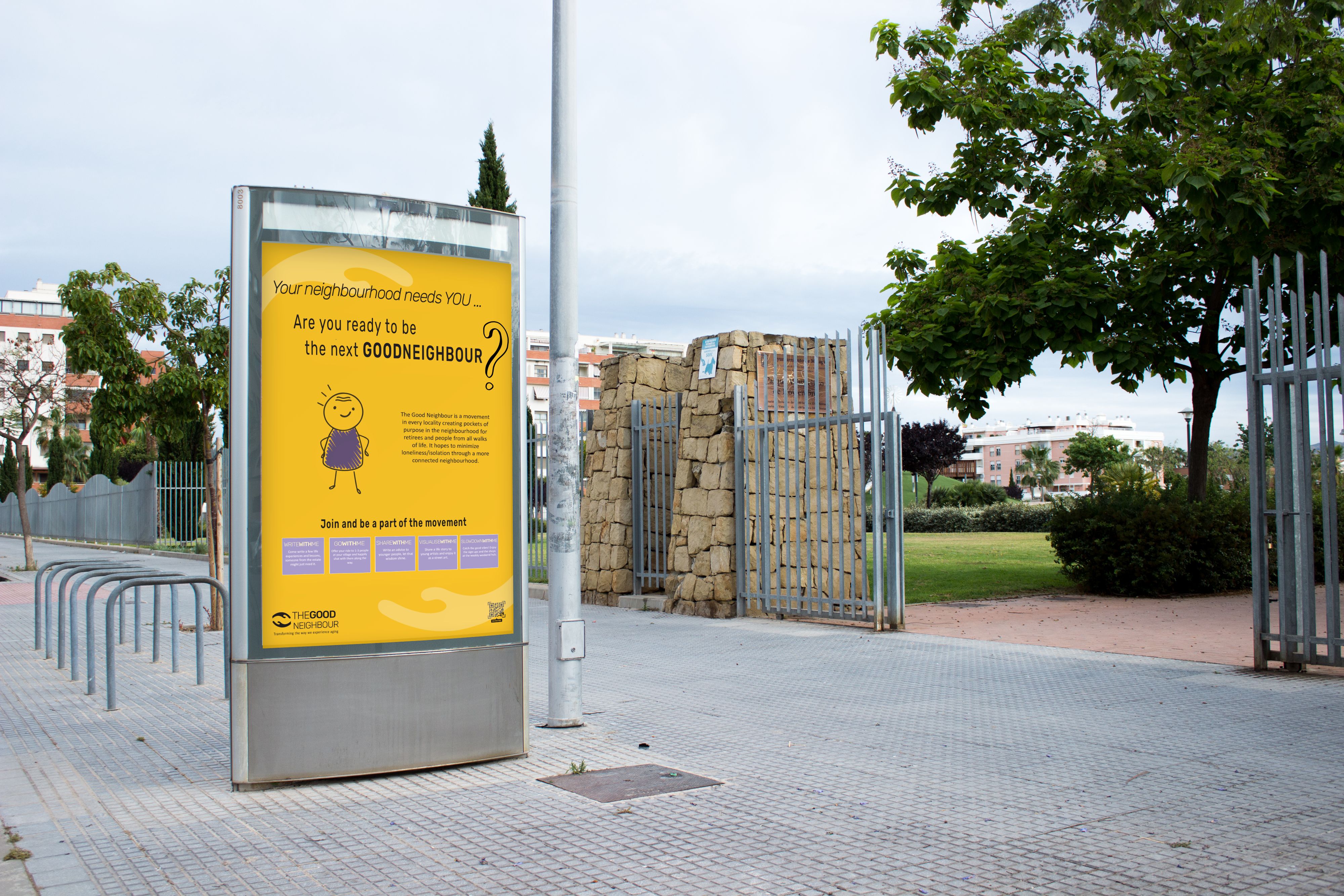 By initially designing for positive interactions with introverts, the solution became inclusive for everyone, including non-older adults experiencing loneliness or social isolation. This “aha” moment led to the creation of multiple interaction touchpoints: ShareWithMe, WriteWithMe, and SitWithMe. It has since expanded to VisualiseWithMe, GoWithMe, and SlowdownWithMe to include young people in the neighborhood. The challenging part was deriving the idea from the main research question: "How can we increase the frequency of experiencing pockets of purpose and raise awareness of older adults’ role in society?" Achieving solutions for both issues required a combination of research rigor and design creativity.